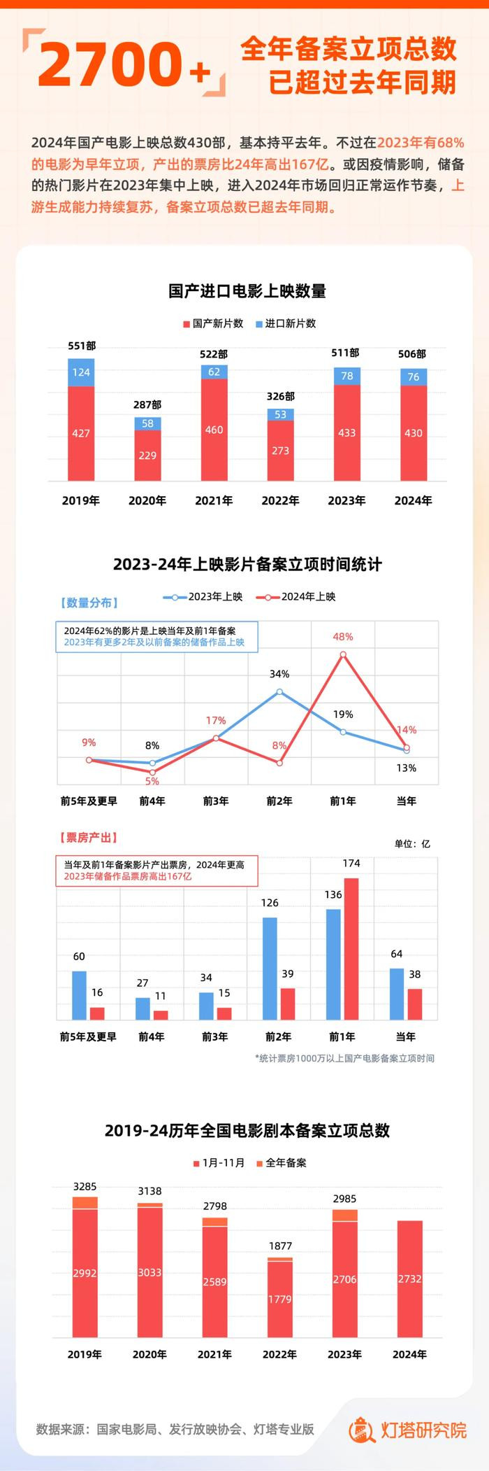不外,供给正在向平时节律规复。《论述》透露,2024年立项备案的影片数目高出2700部,高于2023年。这也意味着,历程1年的调遣,使商场下滑的一大风险一经得到化解。