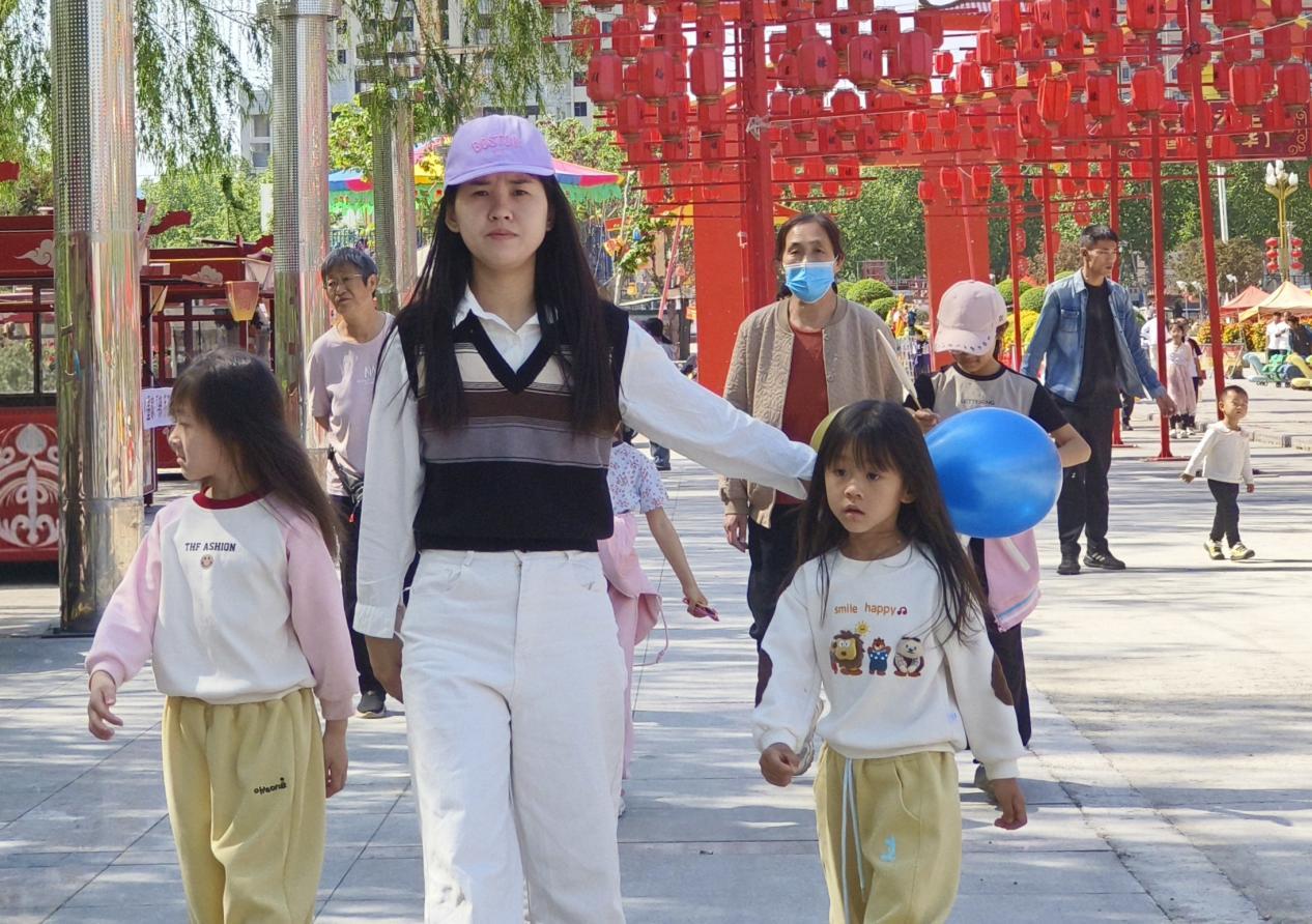 搭客在馆陶县公主湖湿地公园时光阛阓游玩。郝立翠摄