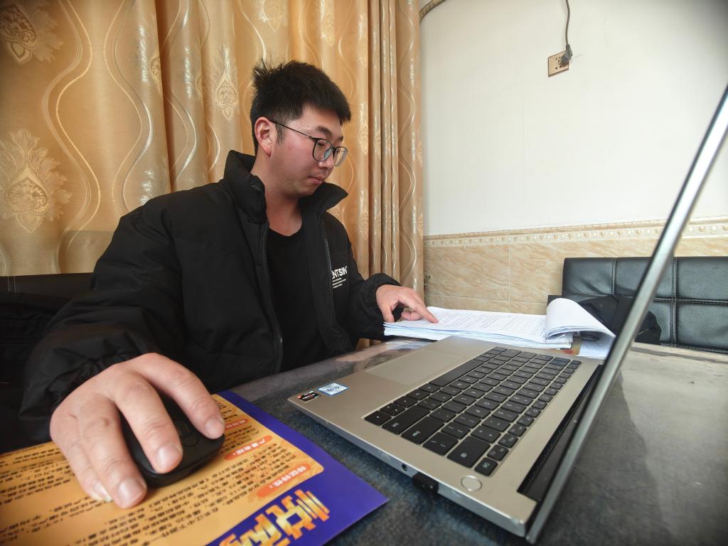 段誉正在整理教师札记。新华社记者周勉 摄