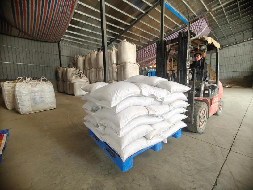 段誉用叉车转运刚到的一批种子。新华社记者周勉 摄