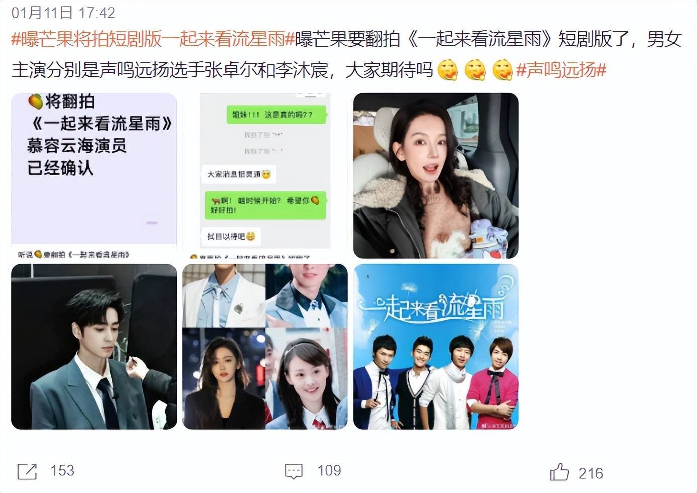 左证知情东谈主士浮现,短剧《一齐来看流星雨》的主演暂定张卓尔和李沐宸,比较于有实力的歌手,芒果更可爱全目的发展的选手,张卓尔的唱功在线,颜值在线,他不仅不错成为歌手,还能当演员,这恰是芒果需要的。