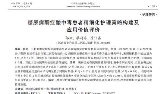 参考贵府:糖尿病酮症酸中毒患者缜密化看护政策构建及利用价值评价,邹珊;廖莉琼;詹仕鑫,中西医聚拢看护(中英文)竞猜大厅真人,2025-03-25