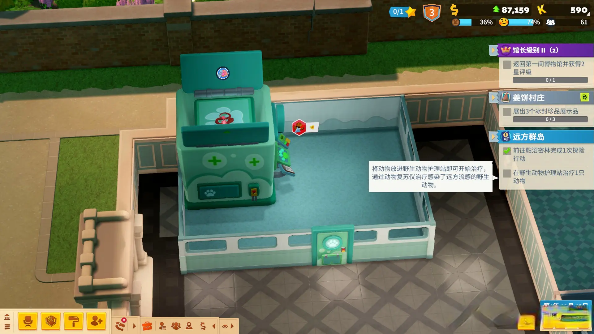 需要注方针是,有一些野活泼物刚刚拿获追想时可能带有传染病,这时,需要将其放弃在朝活泼物照拂站中进行诊疗。此外,玩家需要关爱一辞职活泼物的健康度,后续要是有野活泼物出现生病的情况,亦然可以在朝活泼物照拂站进行诊疗的。