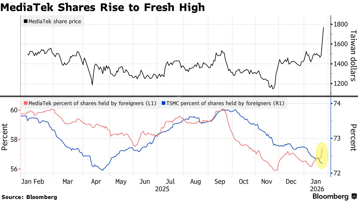 IT之家 1 月 26 日音书,联发科股价创下了历史最好两日涨幅记载,投资者因看好这家芯片盘算企业与谷歌的合营相关而纷纷涌入。